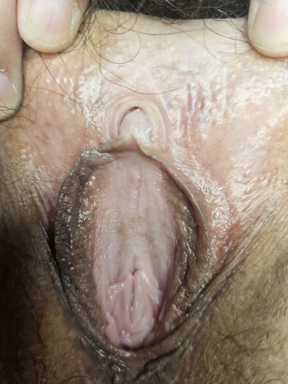 Lutkamainen nainen antaa lähikuvan karvaisesta pillustaan